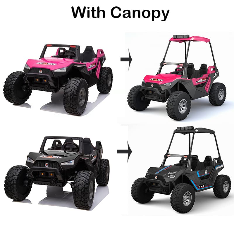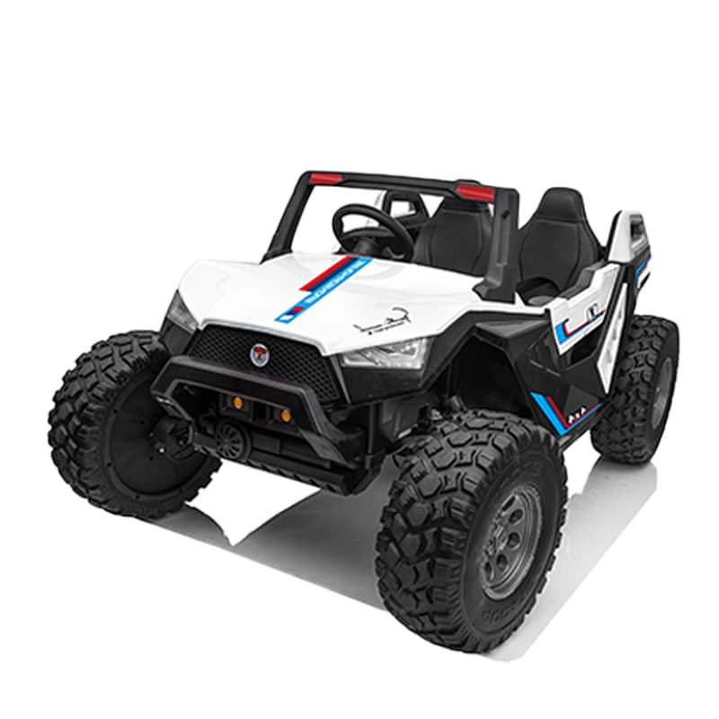 Grandi bambini elettrici cavalcano su un camion giocattolo